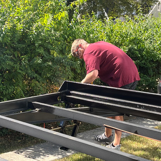 William learned how to weld, starting by attaching jack stands to the frame to level the trailer.